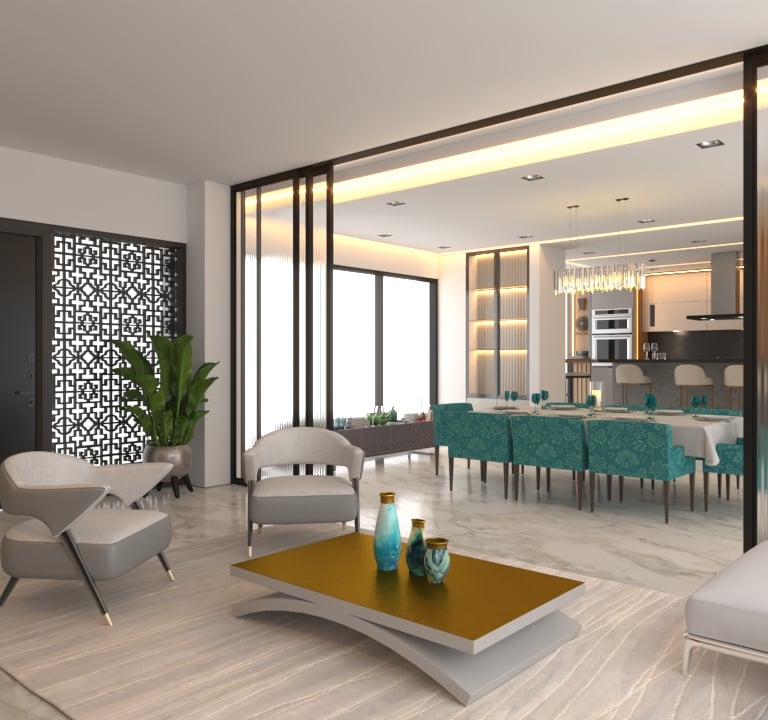 Esta cocina está equipada con electrodomésticos de última generación, que incluyen una torre de hornos, nevecón doble, una moderna placa de estufa, una campana extractora eficiente, un lavavajillas silencioso y un práctico icemaker. Estos electrodomésticos no solo hacen que la cocina sea más funcional, sino que también le dan un toque de modernidad y lujo.